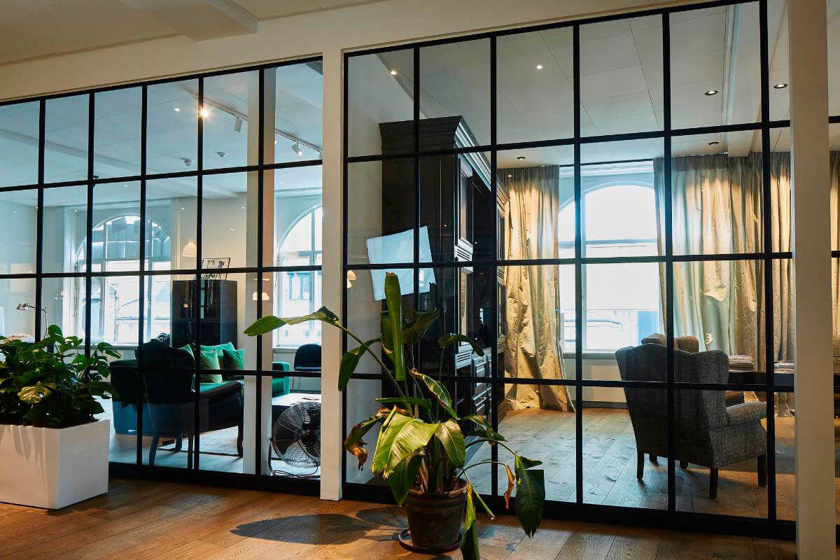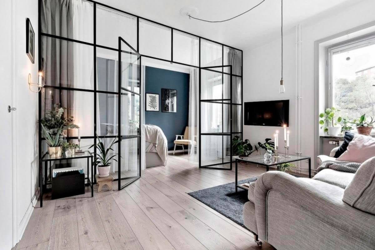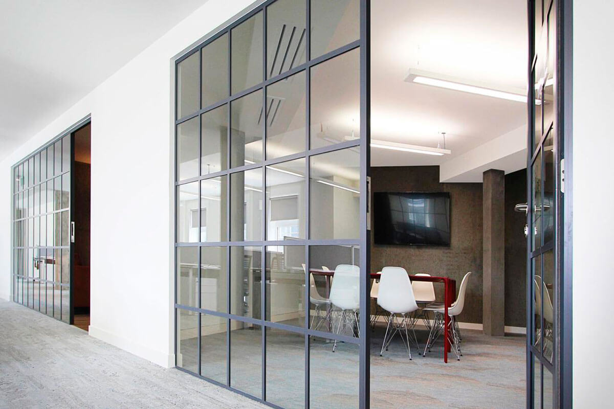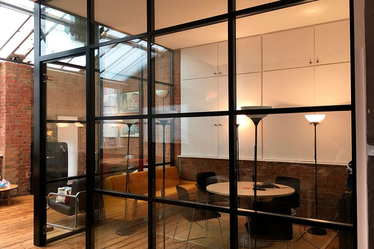 Стильные перегородки в индустриальном стиле — идеальное решение для современного интерьера. Чёрный металлический профиль подчеркивает брутальность лофта, а стекло добавляет света и воздуха.